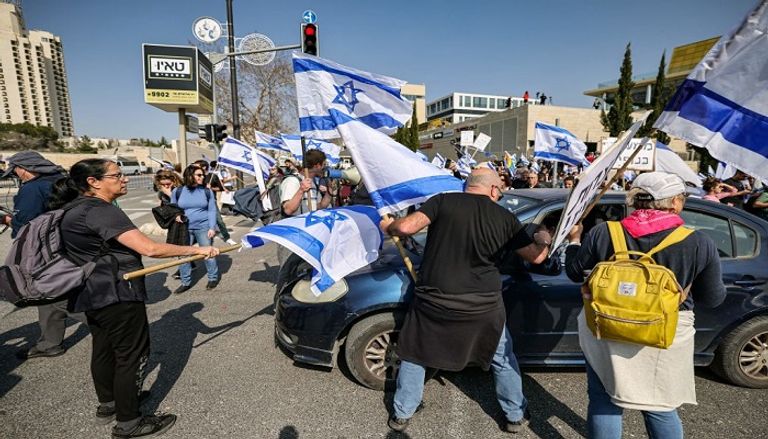 تظاهر أكثر من 100 ألف إسرائيلي، الإثنين، خارج مبنى الكنيست، احتجاجًا على الإصلاحات القضائية التي تسعى إليها حكومة بنيامين نتنياهو.
