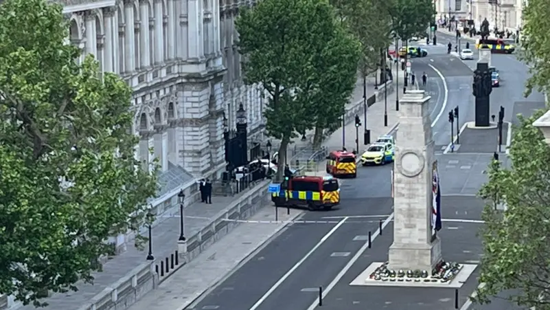 وأظهرت لقطات مصورة نشرت على وسائل التواصل الاجتماعي سيارة بيضاء تتجه مباشرة إلى البوابات بسرعة منخفضة عبر وايتهول، الشارع الرئيسي في الحي الحكومي بلندن.