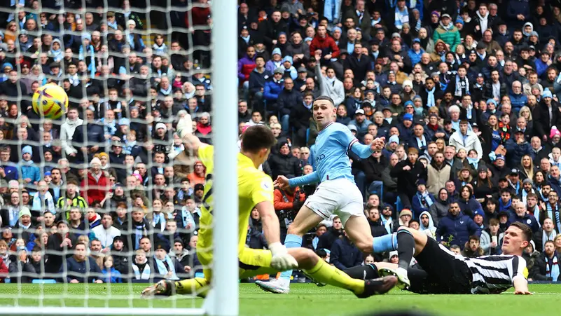 وتقدم مانشستر سيتي بهدف في الدقيقة 15 عندما سدد فيل فودين كرة من على حدود منطقة الست ياردات لتصطدم بقدم سفين بوتمان، مدافع نيوكاسل قبل ان تعانق الشباك.